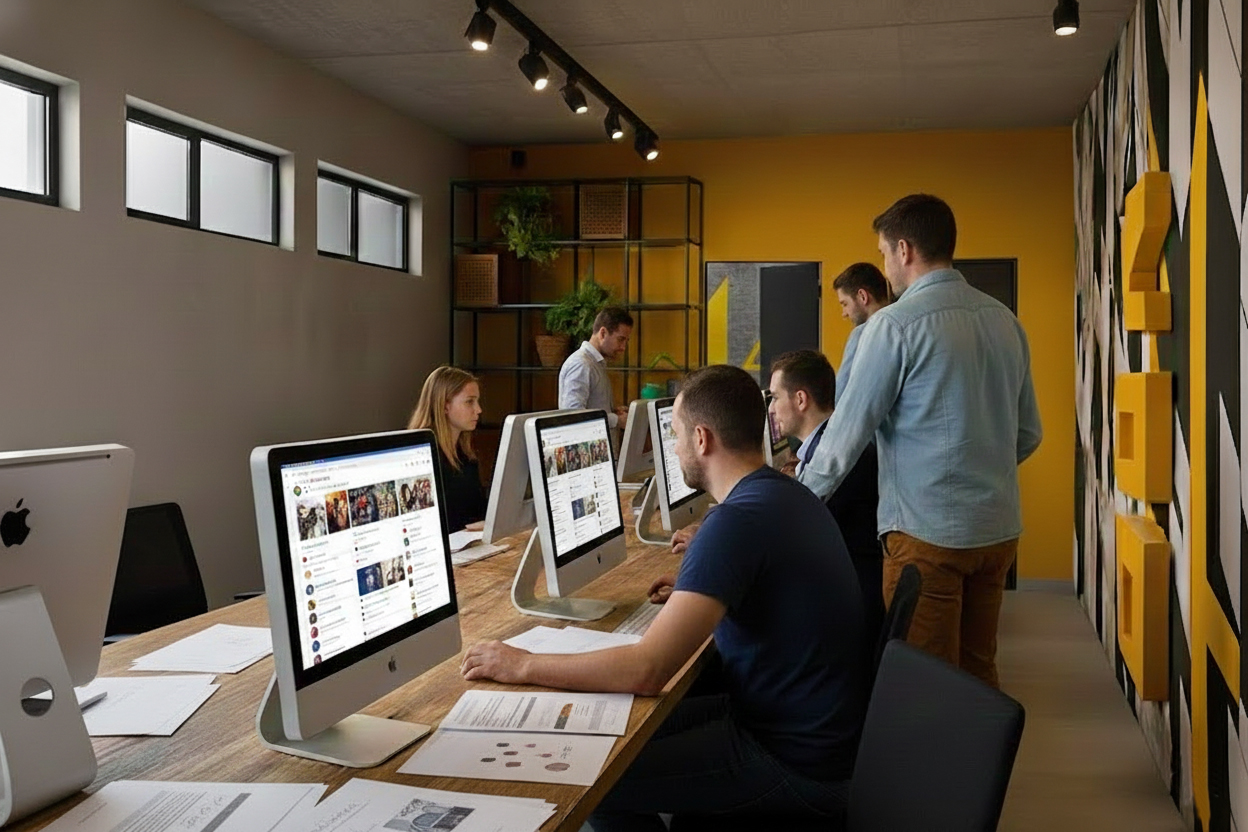 Este projeto não é apenas um escritório, é um laboratório de ideias — um espaço que convida à inovação e à excelência criativa, perfeitamente alinhado com a missão de uma agência de marketing de vanguarda.