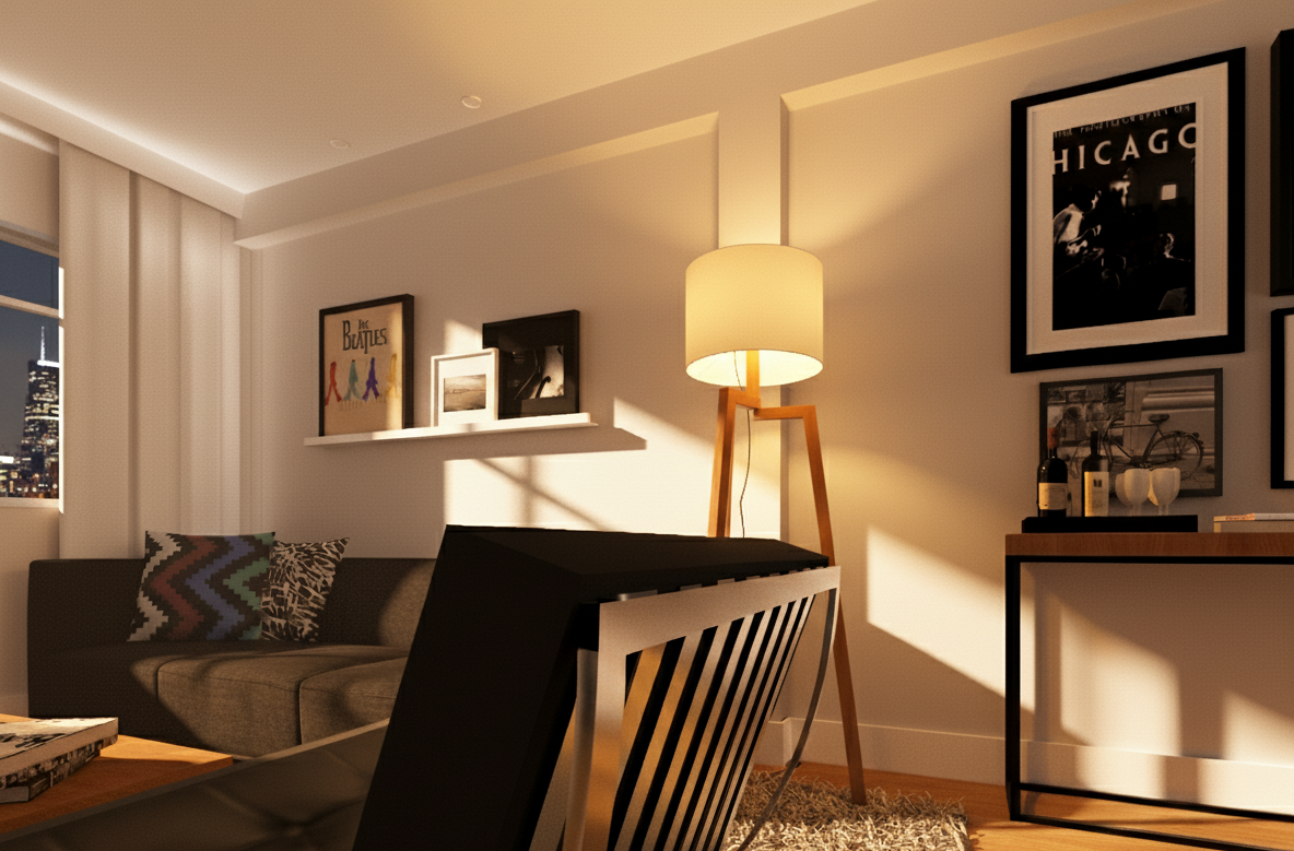 Este projeto de interiores foi concebido para um ambiente compacto e integrado, transformando-o em um studio urbano, moderno e acolhedor que reflete a paixão do morador por música e arte. A paleta de cores neutras e os materiais naturais criam uma base sofisticada, enquanto os elementos de design industrial geram uma personalidade única.